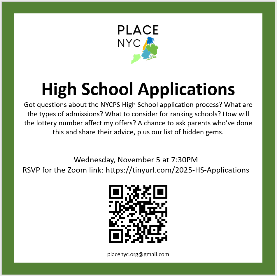 Parents leaders of PLACE NYC hosted a free online event on November 5, 2025 to help public school parents with NYC’s high school application process. After a short presentation, PLACE NYC’…