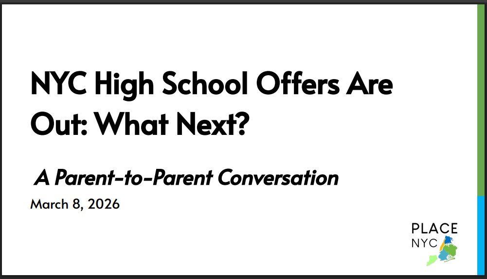 PLACE NYC discusses survey results on proposed changes to NYC’s Gifted & Talented programs.